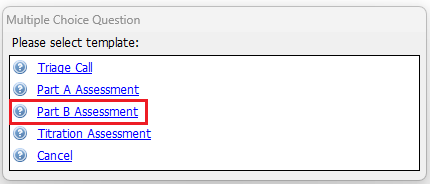 You will be presented with a pop up window with multiple choice options. Select Part B Assessment: