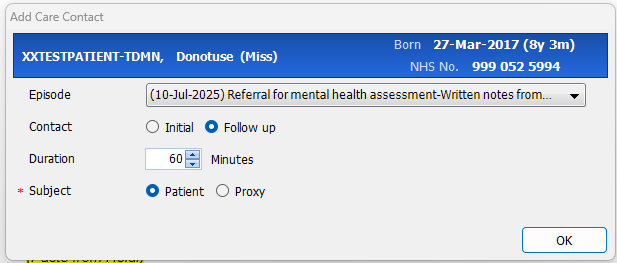 When presented with this pop up Select Follow Up, Enter the minutes of the consultation Click OK:
