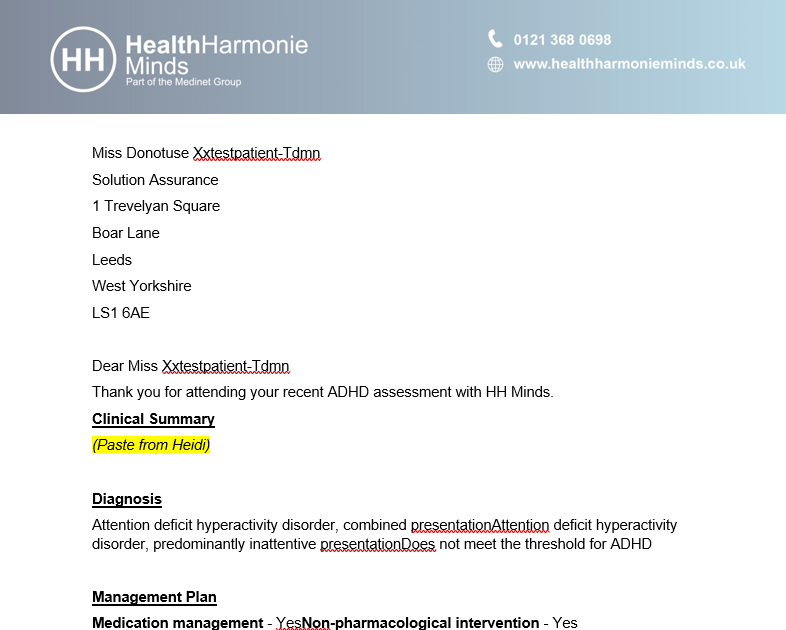 You will be presented with the output report. Review the prefilled data and edit as necessary. Paste the Heidi notes into the Clinical Summary section