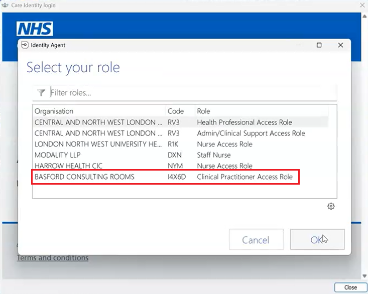 After you have logged into EMIS, insert your NHS Smartcard and select one of the the following Roles: