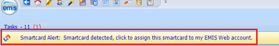 You will then see the following Smartcard Alert message at the top of the EMIS window asking you to assign your smartcard: