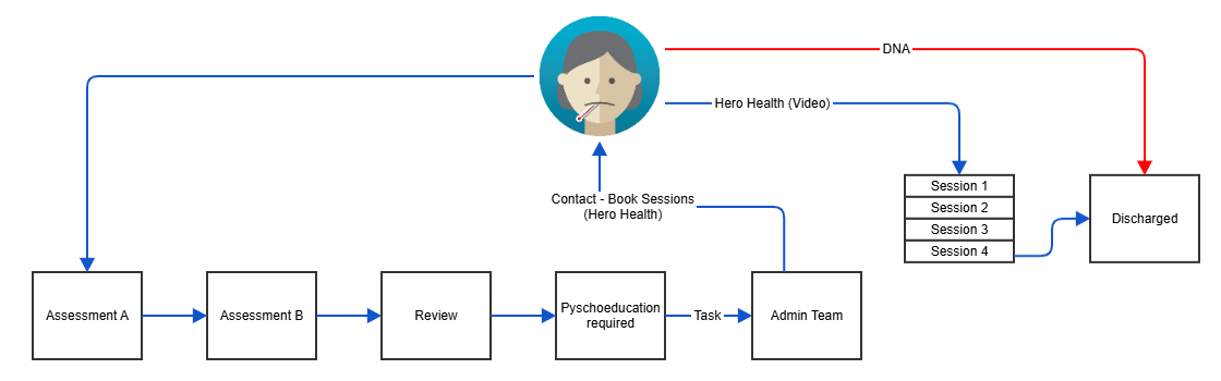 If DNA (Did Not Attend) any session → patient is discharged from service - On Completion of 4 Sessions → patient is discharged from service