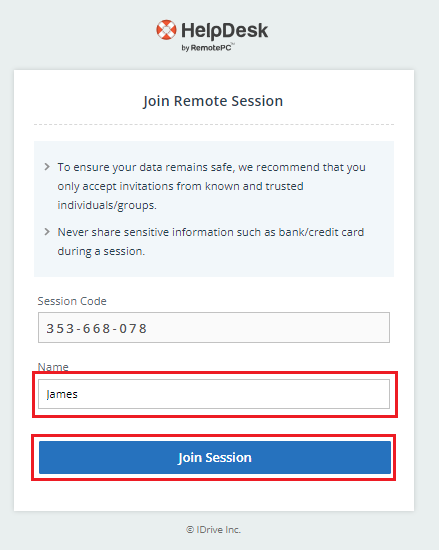 You will then see a Join Remote Session screen - enter your name and click on Join Session: