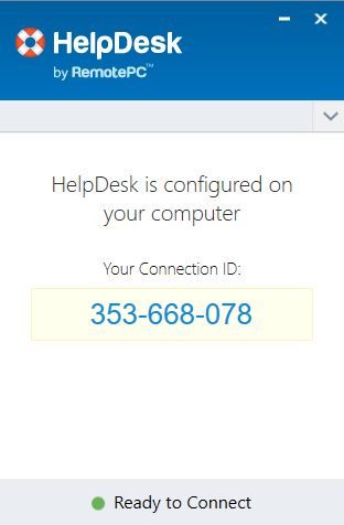 When it has finished, you will then see the following window that HelpDesk is configured on your computer and is ready to connect. The support person can now connect to your device.