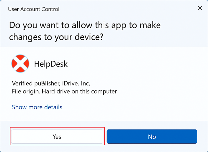 You may get prompted by Windows asking if you want to allow this app to make changes to your device. Click on Yes.