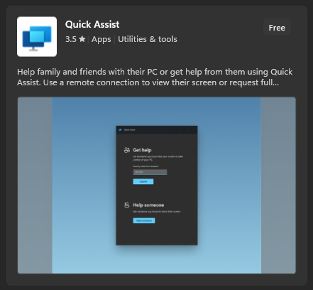 If your Windows device does not have Quick Assist, it can be downloaded from the Microsoft Store:
