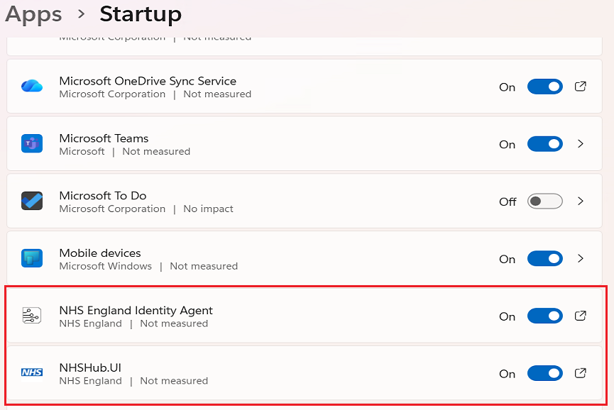 Finally, in Windows, search on Startup Apps, open and check both applications are set to On: