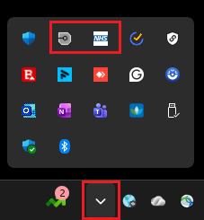 To check both the NHS England Identity Agent and NHS Credential Management Apps are running, click on the Show Hidden Icons chevron. Both icons should be displayed: