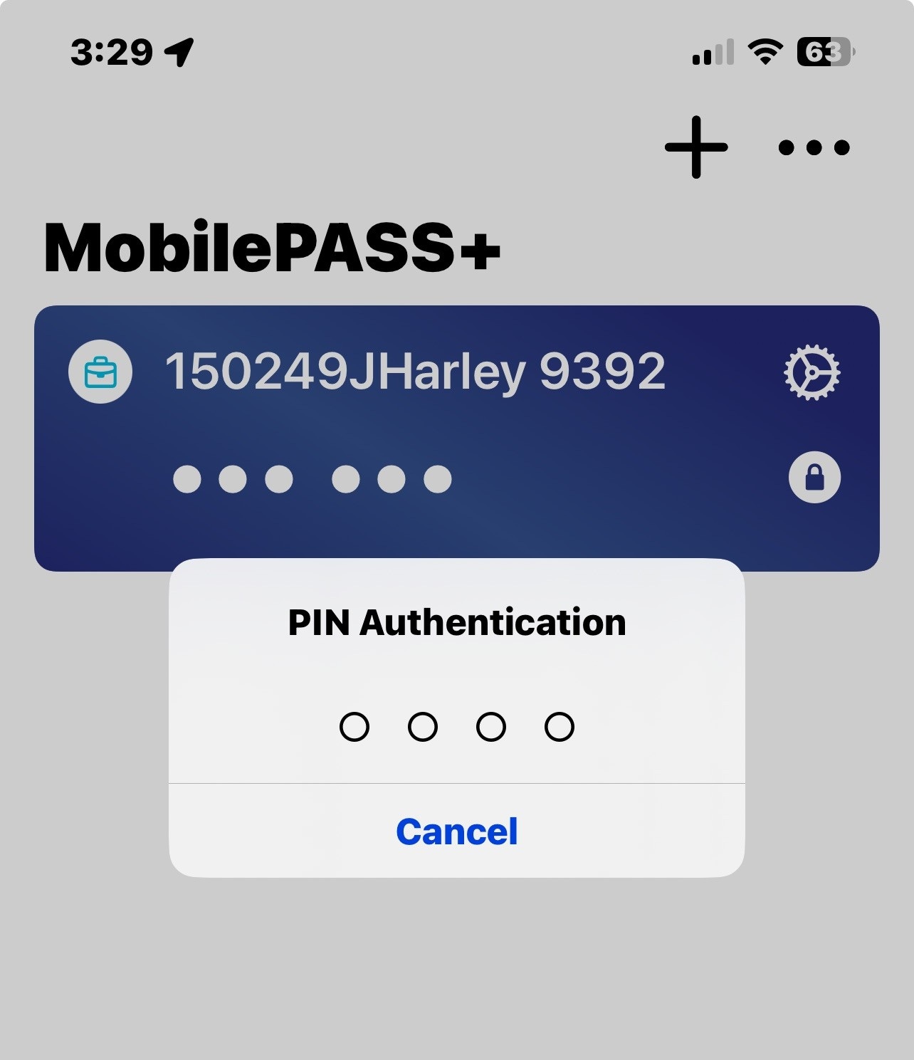 You should now have a token set up on your MobilePASS+. During set-up you would have been asked to set up a PIN Authentication. Every time you need a new password (PIN), open the App, enter your PIN Authentication and a six digit PIN will be generated. This PIN lasts for 60 seconds.