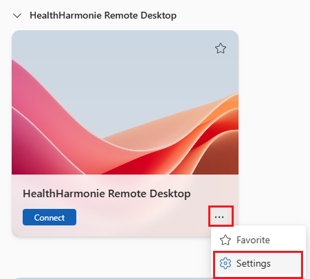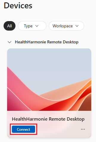 Once signed into the Windows App, click on Connect for the HealthHarmonie Remote Desktop: