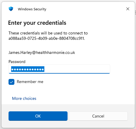 Re-enter your password for the Windows security prompt: