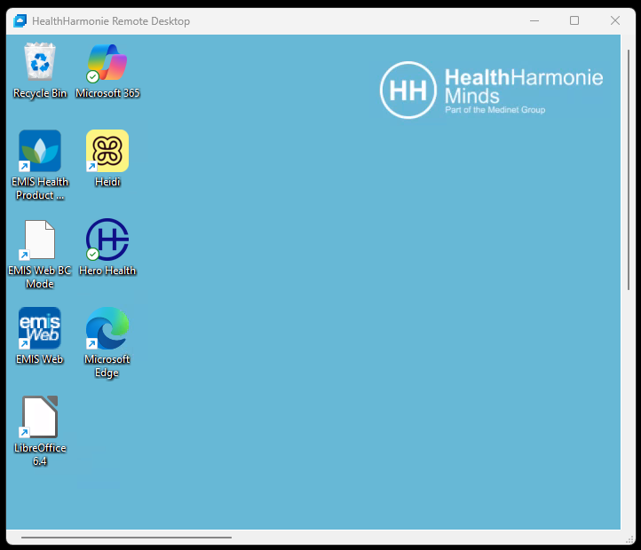The Health Harmonie Virtual Desktop will enable staff to access all applications such as EMIS Web, Hero Health, Heidi and Microsoft 365 on any device - Windows, Mac, Android and so on.