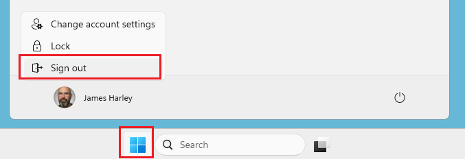 When you have finished, close all Apps and then select the Windows Start button and choose Sign out: