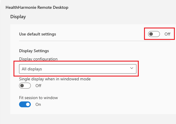 If you want the Virtual Desktop to display across multiple displays, click on the three dots on the HealthHarmonie Remote Desktop App: