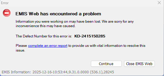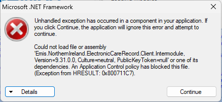 If when opening EMIS, a browser window opens with the following message (maybe following a Windows update):
