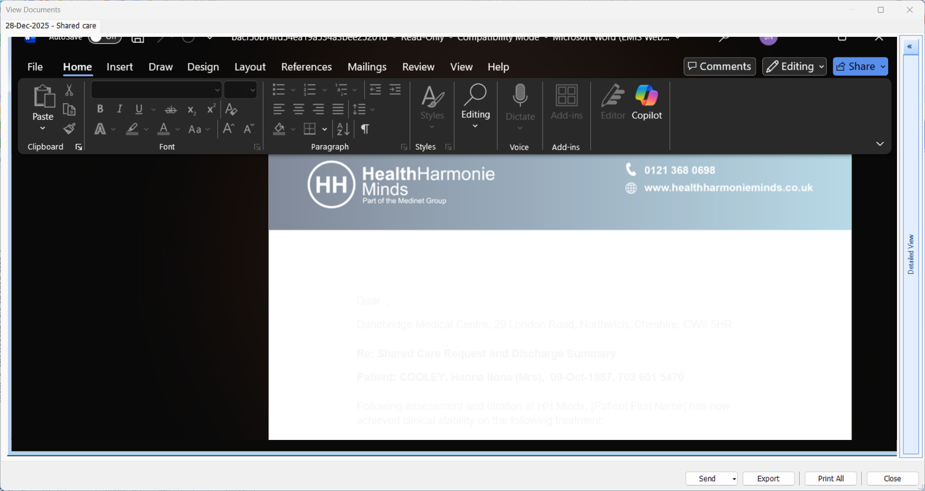 If the font in MS Word is very light and indistinct when opening or editing Word Templates in EMIS Web - such as below: